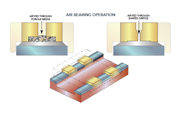 Air-bearing guides complement multi-axis stages with noncontact movement of loads.