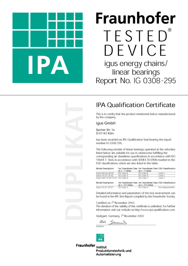 In real-world installations though, moving cables and cable carriers can generate particles. So, some cable manufacturers offer products with special low-friction coatings to minimize particle generation; cable tracks with abrasion-resistant joints can also help reduce wear between sections.