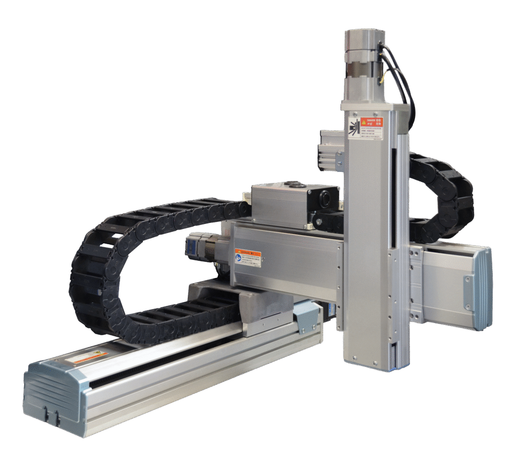 Robotics in the form of cartesian robotics also consist of assemblies of linear-motion components such as linear guides, ballscrews, and encoders … or pre-integrated actuators … or even linear motors as in the high-speed assembly shown below. But just like articulated and SCARA robotics, these are more likely to serve various adaptive functions.